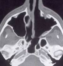 RESEZIONE TRANS-NASALE ENDOSCOPICA Viene utilizzata nei piccoli tumori limitati al rino-faringe, alle cavita’ nasali ed al seno sfenoidale. Puo’ anche essere tentata nei tumori che hanno una limitata estensione nella fossa pterigo-palatina. I principali vantaggi dell’ approccio endoscopico dipendono dalla minima distruzione dei tessuti molli e delle strutture ossee. L’acceso è comunque ristretto e l’eventuale sanguinamente puo’ disturbare molto la visione intra-operatoria. Percio’ è essenziale un’ ottimale embolizzazione che escluda le principali afferenze vascolari del tumore. Anche cosi’, si ritiene prioritario per una soddisfaciente exeresi tumorale un costante controllo endocopico della Mascellare Interna. Le tecniche endoscopiche possono anche essere complementari ad altri approcci chirurgici ed uilizzate per valutare l’esatta estensione del tumore ed un’adeguata resezione specialmente a livello del seno sfenoidale.